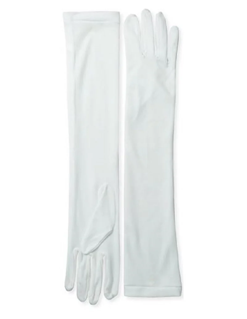 These women's style 18" long (elbow) stretch gloves are the perfect costume accessory. Available in black or white - sold in pairs of one color each. Perfect for Halloween, cosplay, theatrical productions, dress up, prom, dance teams, old Hollywood, theme parties and more! Other costumes and accessories are sold separately on our page - subject to availability.