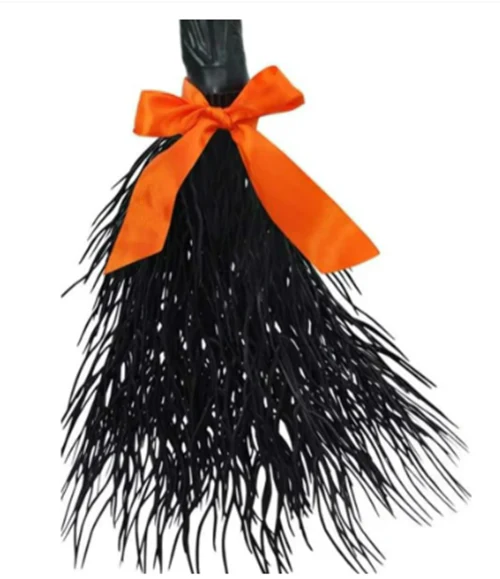 Fly away on this amazing broom set. Double, bubble, toil and trouble with this black witch broom with 3 interchangable witchy colored ribbons to match your ensemble (costume and other accessories sold separately). You'll be the only witch with a really pretty broom when you sport this unique accessory. Stir up some trouble with a fun witches' accessory (a single black witch broom) that breaks down in to separate pieces for easy shipping and storage. Perfect for Halloween, theatrical productions, theme parties, cosplay decoration and more. Other costumes and accessories (hats, noses, gloves, theatrical makeup, wands and other props...) are sold separately on our page – subject to availability. One size works for most teens and adults and may work for larger children as well.